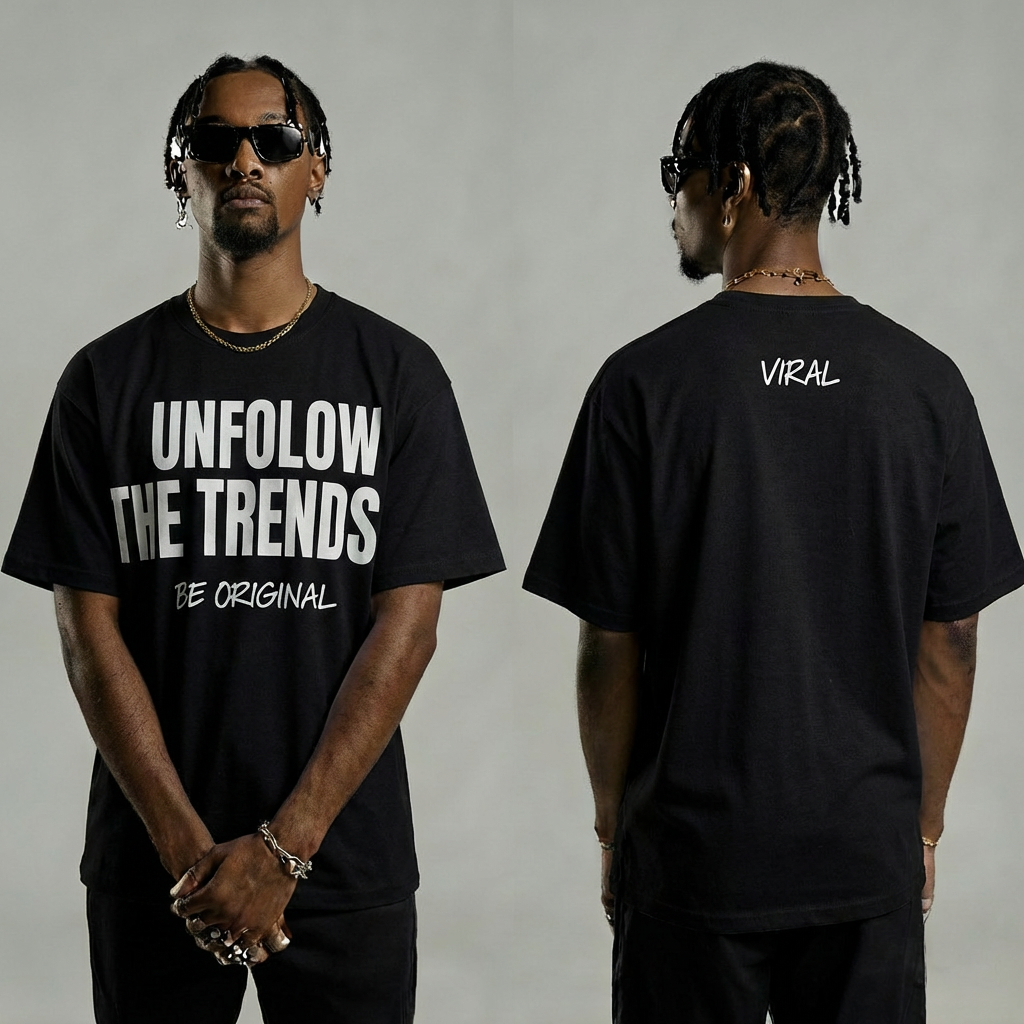 Men’s Black Tee with White Print – “Be Original, Unfollow the Trend”