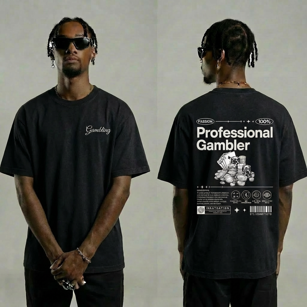 Beige Pro Gambler T-Shirt – Retro Poker Player Streetwear
